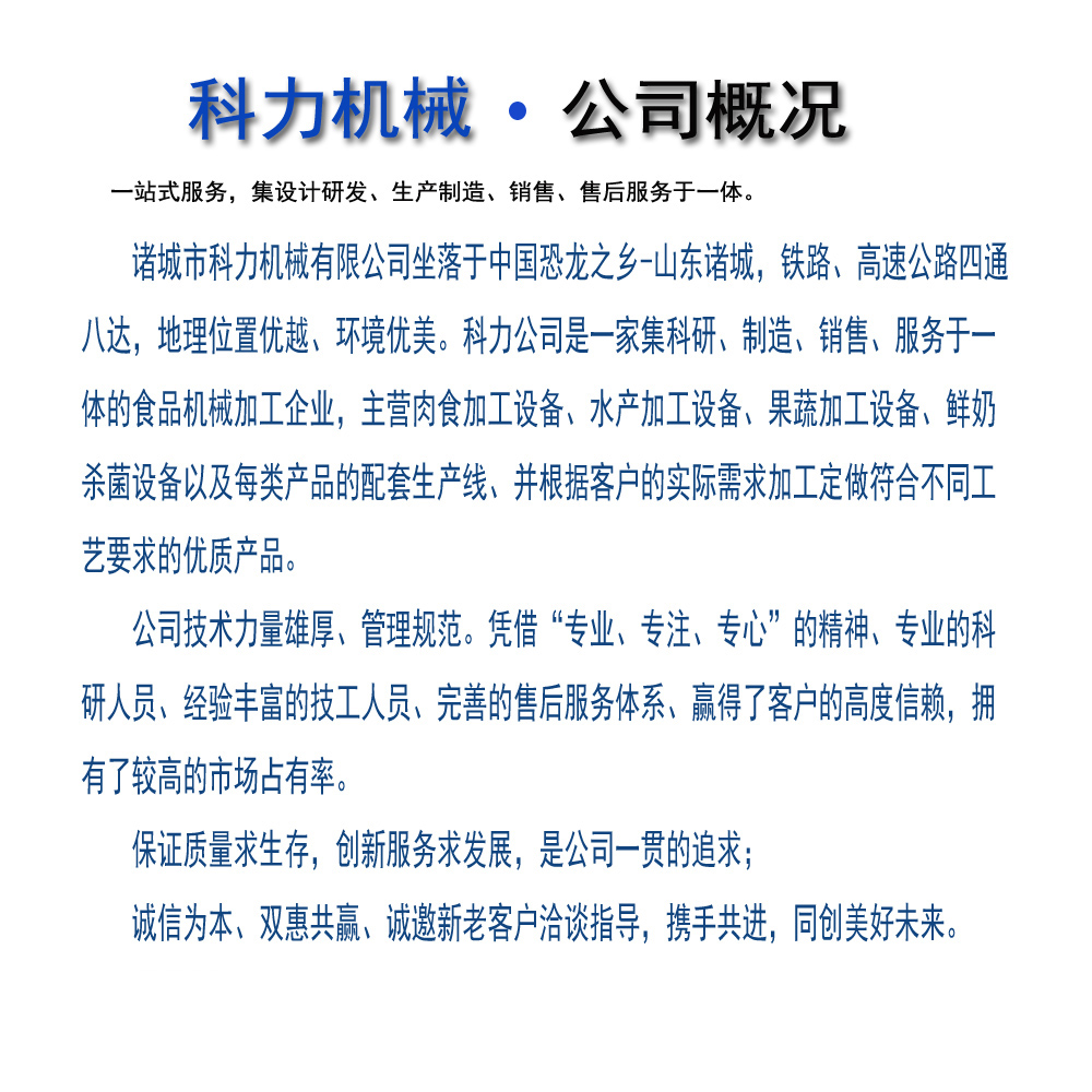 諸城市科力機(jī)械有限公司 銷(xiāo)售電話(huà):0536-6519718 公司郵箱:郵箱: zckljx@163.com 地址:諸城市密州街道觀(guān)海路3500號(hào)